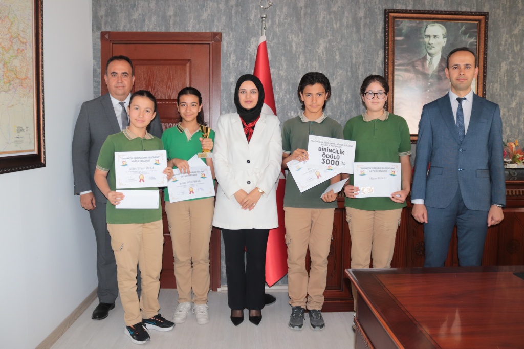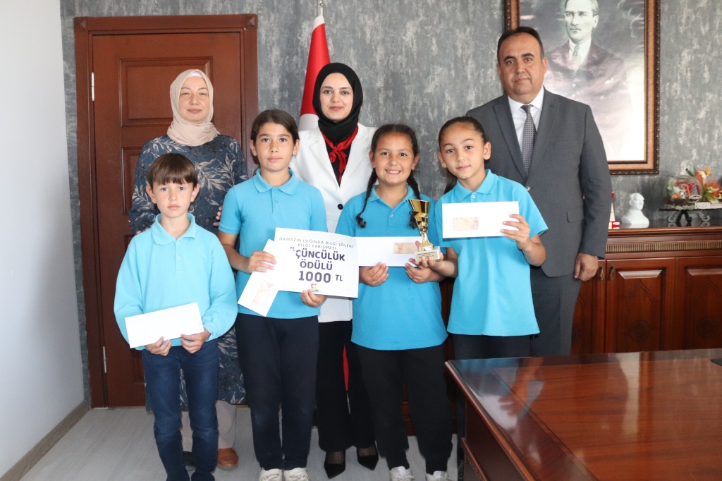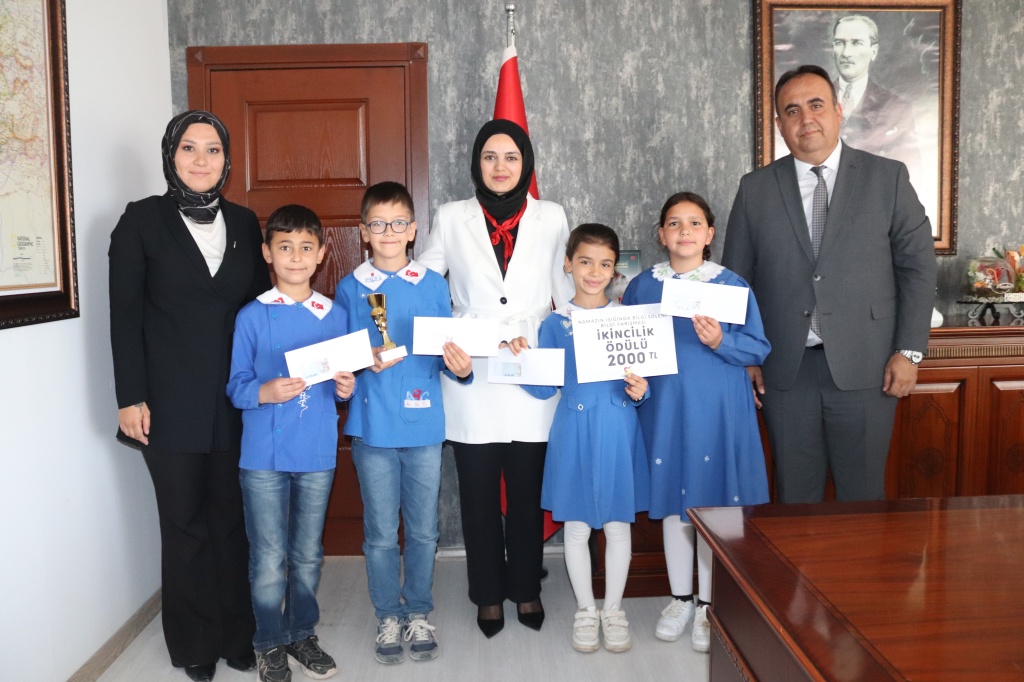 Dereceye giren tüm okullara ödülleri, İlçe Kaymakamımız Sayın Gizem BAYGUŞ tarafından Kaymakamlık Makamında düzenlenen özel bir törenle takdim edildi. Kaymakamımız Sayın BAYGUŞ, öğrencileri tebrik ederek, dini bilgilerin önemine ve bu tür etkinliklerin genç nesillerin manevi gelişimine katkısına vurgu yaptı.